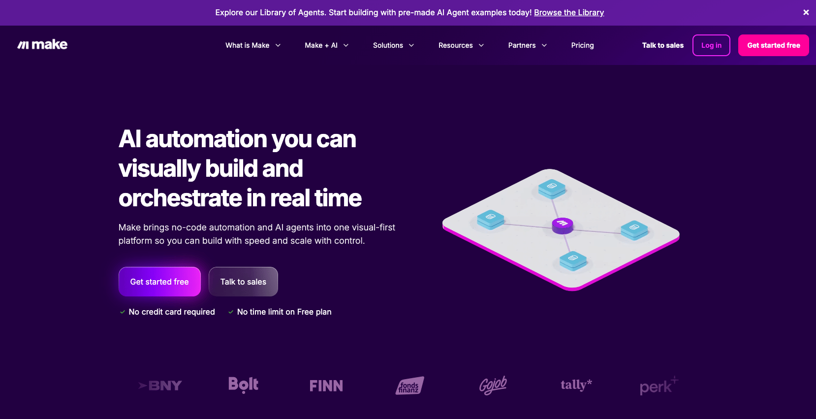 Make es el visual builder más intuitivo. Conecta más de 3,000 aplicaciones usando una interfaz de arrastrar y soltar. Desde $10.59 al mes. Es perfecta si quieres empezar sin experiencia técnica.